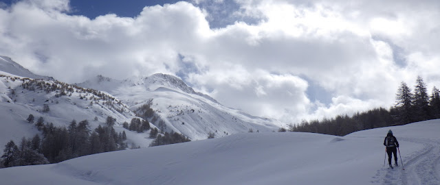 Un vent violent de Sud, accompagné d'une 15cm de neige, rendent les conditions nivos délicates. Dans ce cas là direction le pont de Lariane pour le beau, paisible vallon du col du Longet et le pic Traversier si pas trop d'accumulations de neige.